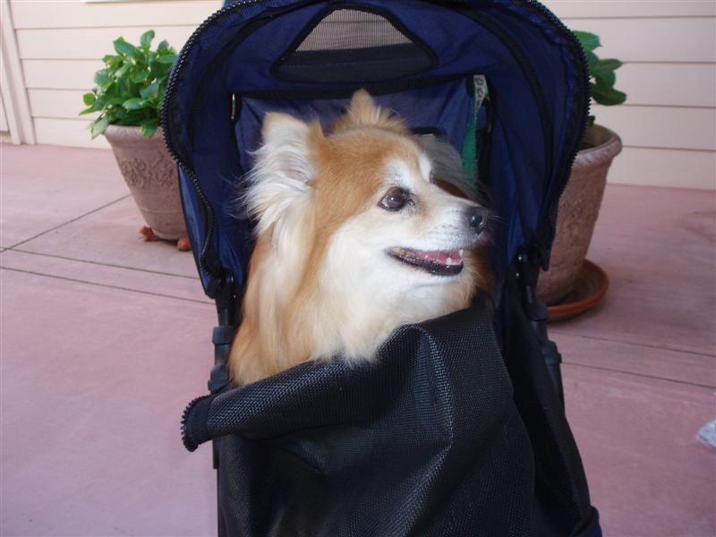 Happy used her stroller often in the past year – and daily in the last month – because she was getting on in years. And there was heart trouble, kidney disease, an ulcer. Still, she was a dog who lived to ramble, to amble, to run and run. And to ride! Oh yes.