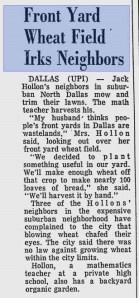 I wonder if anyone has ever done that, planted wheat on their yard, in a suburban neighborhood. Well, of course.