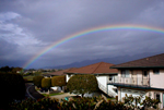 Opening my front door this morning, dog in my arms and backpack replete with freshly slaughtered English, I was met by this wonderful rainbow.